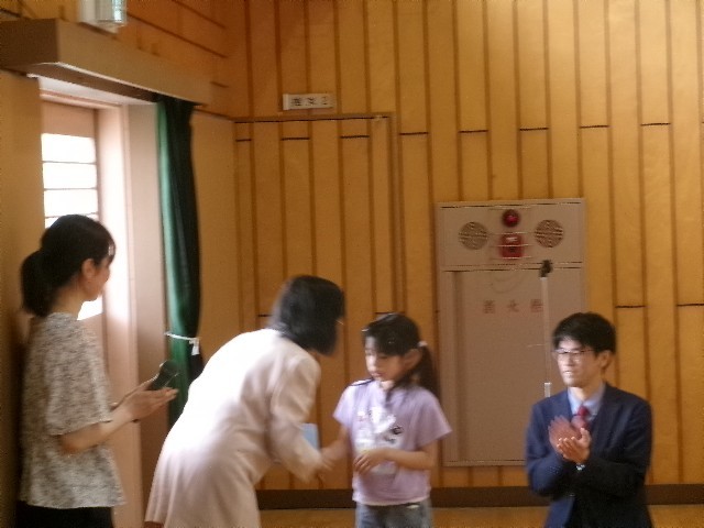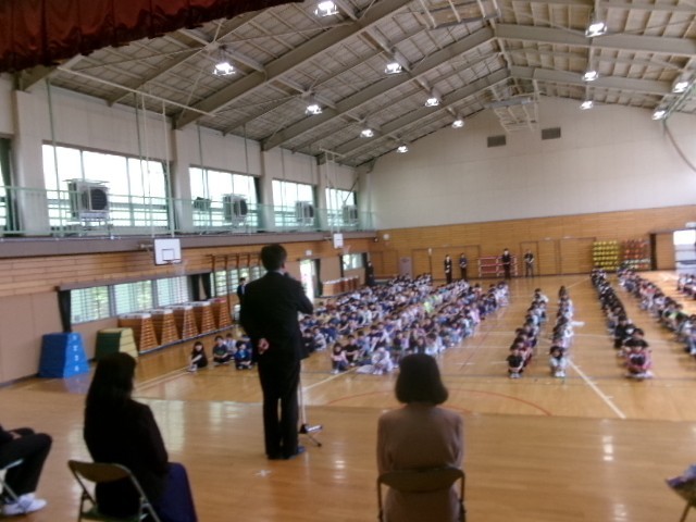 今日の5時間目は離任式がありました。久しぶりに会えた先生方に児童もとてもうれしそうでした