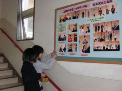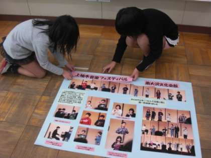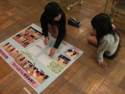 校長先生のお手伝い 公開日 2012/12/07 更新日 2012/12/07 とちのみ学級 上柚木音楽フェスティバルの時、校長先生が写真を撮ってくれました。その写真を模造紙に貼るお手伝いをしました。ゆっくり、ていねいに作業しました。階段の踊り場にある掲示板に貼り終えたあと、「お仕事終わりました。」と校長先生に報告に行きました。「『ありがとう。またお願いします。』って校長先生が言ってたー。」と、笑顔で教室に戻ってきました。誰かの役に立てることは、気持ちがいいですね。