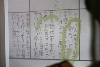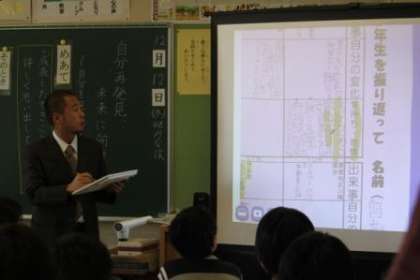 6年国語科研究授業2 公開日 2012/12/12 更新日 2012/12/12 今日の出来事 書画カメラを利用し、よく書けている子の表現を子供たちに紹介し参考にしました。 5・6年の行事だけでもたくさんあり、子供たちは仲間と思い出を話したりしながら、思い出して書いていました。 校長より 6年 授業 研究・研修