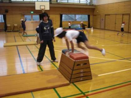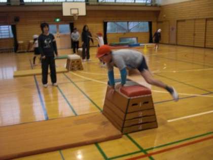 跳び箱運動 発表1 公開日 2012/12/17 更新日 2012/12/17 とちのみ学級 今日は、跳び箱運動の最後の時間となりました。一人一人、これまでの練習の成果を発表しました。大きい跳び箱の4段・5段が跳べるようになった人。小さい跳び箱の4段・5段が跳べるようになった人。小さい跳び箱の2段・3段が跳べるようになった人。 学年、発達段階によりますが、みんな昨年度より1段多く跳べた成果を発表することができました。