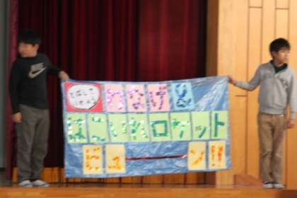 とちのみ学級のお店紹介 公開日 2012/12/20 更新日 2012/12/20 今日の出来事 とちのみのお店の名前は、「飛ばして入れよう、輪投げ&箱入れロケット ビユーン」です。輪投げや箱入れロケットを実演して遊び方を紹介。箱入れロケットのデモンストレーションで、なかなか箱に入らないと「頑張れ!!」と見ている子どもたちからの声援。温かい気持ちになりました。 校長より とちのみ 行事