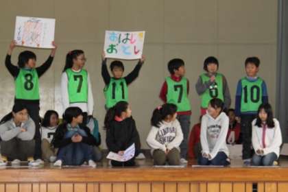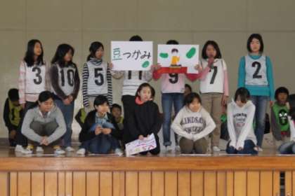 5年2組のお店の名前は、「VS 5の2」です。相手をくじで決めて対戦します。ゲームは4つ。「豆つかみ」「おはじき落とし」「ピンポン球レース」「ティシュつかみ」。誰が対戦相手になるのかお楽しみに。
