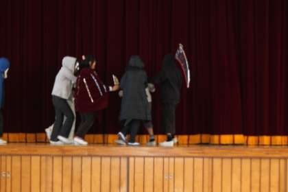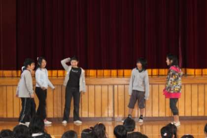 6年1組のお店の名前は、「デスリミット」です。寸劇で恐怖体験を演出。怖い体験をしたい人にお勧め!!PRの時に、「お化けをいじめないで!」とのお願いも・・。