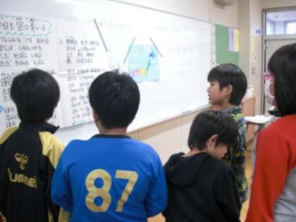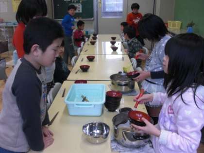 今日の1・2時間目に、畑から収穫した大根を使って「おでん」を作りました。なぜかというと・・・残念ながら、明日、転校してしまうお友達がいます。そのお友達のために「おでん」を作りました。5時間目は、お友達の好きな歌をみんなで一緒に歌いました。その後、味のしみた「おでん」を仲良く食べました。お友達に「美味しかったです!」と笑顔で言ってもらえたので良かったです。明日、最後の愛宕フェスティバルを一緒に楽しみたいと思います。
