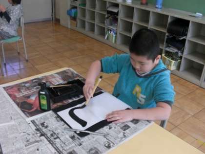 自分の名前も、見本を見て何度も練習をしました。力加減をしないと太くなり、字が潰れてしまうので、力の入れ具合に気を付けながら上手に仕上げることができました。