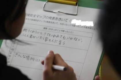 地域安全・危険マップの発表会3 公開日 2013/01/16 更新日 2013/01/16 今日の出来事 こちらは、調べたところの写真や地図を示し具体的に危険箇所を説明してくれました。聴いている子たちも他の班の調査の結果を真剣に聴き取りメモしていました。発表する子も聴いている子も素晴らしい態度に感心しました。 校長より 3年 4年 行事