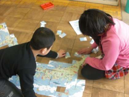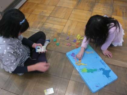 今日は、3つのパズルとカードを2人組で、仲良く協力して完成することができました。「お初の完成〜〜〜!」とハイタッチをして喜ぶ姿も見られました。