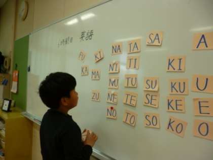 英語学習 1 公開日 2013/02/01 更新日 2013/02/01 とちのみ学級 2組Bは、31日(木)6時間目の「英語学習」で、アルファベットとローマ字を学習しました。3年生は初めてですが、ローマ字が並ぶのを見て、「あー、あいうえお順だ。」と気がつきました。4年生・6年生は、昨年の学習を思い出しながら、自分の名前をローマ字のカードで並べることができました。
