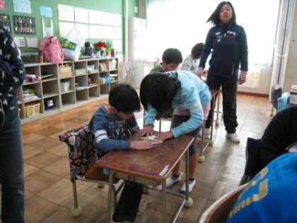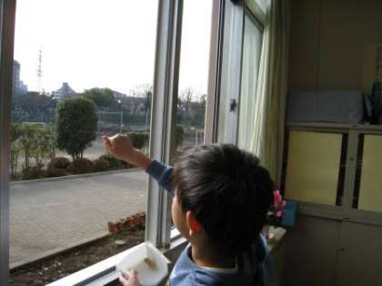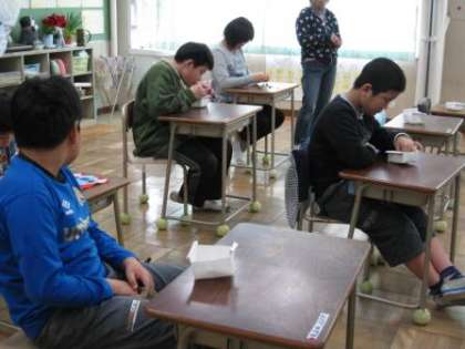 2月1日(金)の2時間目に、「2月3日は何の日でしょう?」と聞くと、「豆まき」「節分!」と答えがかえってきました。「ひいらぎ」「豆がら」「いわしの頭」を見せ、鬼が入ってこないように、玄関におくことを話しました。その後、豆を入れる箱を紙で折り、豆まきをしました。それから、年の数+1個の豆を数えて入れて食べました。いつもは、豆が苦手な児童も1個食べたら、「食べれる」と言っておかわりをしました。「3日の日には、家でも豆まきをしよう!!」と呼びかけました。