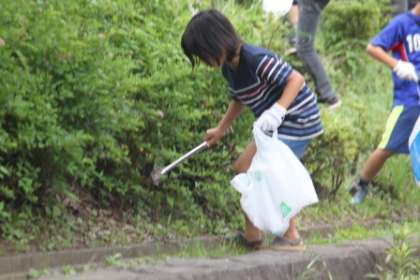 子供たちは、側溝の中や茂みの中を丁寧に見てゴミを集めてくれました。先生方も多数参加いただき方面毎について作業を行いました。