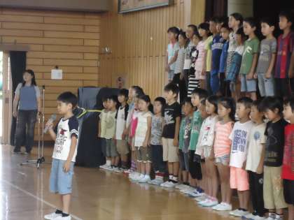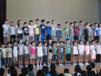 7月9日(火)の朝会において、谷川俊太郎さんの『歩くうた』を音読しました。約一週間、一人ひとりが家でも練習を重ね、しっかり暗唱できました。詩のリズムと、内容を踏まえた力強い読み方を学びました。大勢の前で声を出す経験が、秋の学芸会へとつながっていきます。