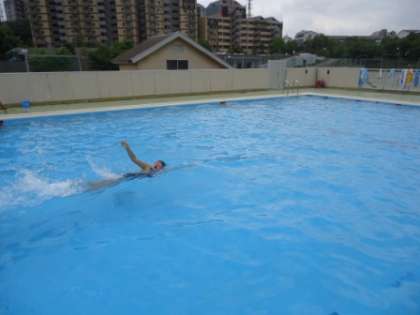 1学期最後の水泳学習でした。1枚目は、高学年女子がきれいな「けのび」をしている所です。2枚目・3枚目は、高学年のお兄さん・お姉さんが「クロール」をしている所です。今日、クロールで150メートル泳いだお姉さんがいました。一緒に授業をしていた2年生から「すごいねー!」と大きな拍手をもらいました。