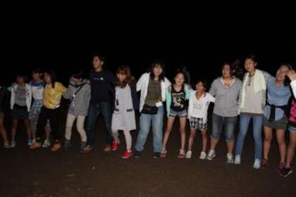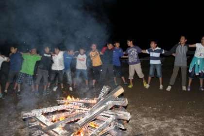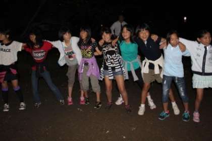 キャンプファイヤーのフィナーレは全員で「虹」の合唱。ファイヤーを囲んで全員が肩を組み一つになりました。子供たちに最高の思い出ができました。