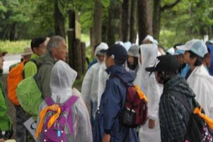 日光移動教室2日目 その2 公開日 2013/07/26 更新日 2013/07/26 今日の出来事 昨日十分睡眠をとったので、子供たちは食欲旺盛。朝食を済ませ、バスで湯の湖の駐車場へ。その頃から小雨が降り始めました。湯滝で記念写真を撮ってネイチャーガイドの方と4グループに分かれてハイキング開始。 校長より 6年 とちのみ 行事