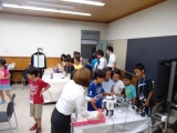 最後に、科学技術館から運ばれてきた、「UNI-CUB」というロボットを見学しました。一人乗りのロボットで、体重移動のみでリモコンもハンドルも使わずに動く姿に、とても驚いていました。