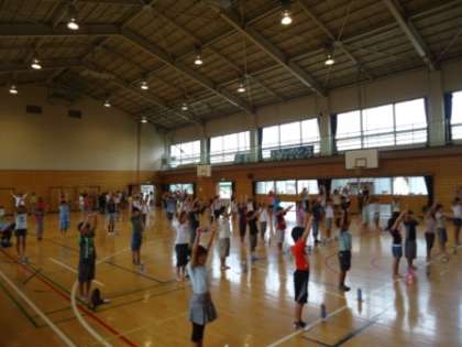 今年も多くの子どもたちが集まって、朝早くからラジオ体操を行いました。前半では貴家さんにご指導をいただいてきれいな体操を学びました。毎回眠そうな顔の児童もいましたがみんな元気に計10回のラジオ体操を終えることができました。皆勤賞の児童も多くすばらしいなと思いました。愛宕会の皆様ありがとうございました。