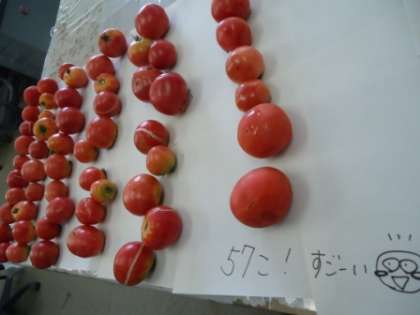 1年生のトマト! 公開日 2013/09/08 更新日 2013/09/08 1年生 春から育てているトマト。夏休みはどうなっていたか知っているでしょうか。夏季プールに来ていた子どもたちはどんどん赤くなっていく実を見たと思います。 実はこんなになっていたのです。8月の後半、お盆明けのトマトの畑を見に行くと、いたるところに熟した真っ赤なトマトの実がなっていました。このトマトは先生たちでおいしくいただきました。 1年 授業 生活