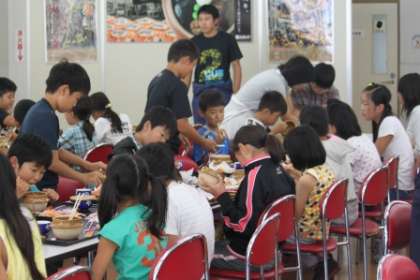 12時10分。“おぎのや諏訪IC店”に到着。昼食のメニューは、“峠の釜飯”。どの子も“お釜”を持って帰ろうと頑張って「完食」をめざしました。