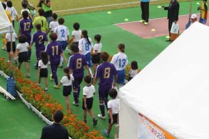 9月30日(月)。第68回国民大会 サッカー競技(女子)の12時キックオフの東京対愛媛の試合のエスコートキッズを本校の1~3年の児童が行いました。11時20分に集合し係の方から説明を受け、リハーサルを2回ほど行い本番に臨みました。どの子を練習の成果をしっかりと出し素晴らしい態度で役割を果たすことができました。