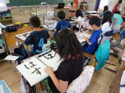 「はす」を習字で書きました 公開日 2013/09/30 更新日 2013/09/30 4年生 2学期になり始めての書写の時間をおこないました。 今回は「はす」を結びに気をつけて書きました。 特に「は」が難しいという子どもが多く、何枚も繰り返し練習をしていました。 最後には全員丁寧に「はす」を書くことができました。 4年