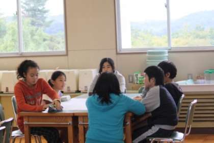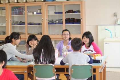 全員がアイスクリーム会社の商品開発の担当となったと仮定して、「おじいちゃんおばあちゃんの誕生日に家族が一緒に食べてみんなが喜ぶようなアイスクリームの開発」をグループ毎に行いました。模造紙に記入することは、1.商品目。2. 大きさ。3.アイスクリームの絵。4.喜ばせる作戦を3つ以上。(素材、作り方、気持ち) 時間は、20分間の話し合い開始、休憩5分、各グループの発表で進められました。どのグループもしっかりと時間を守って企画を考えることができました。6年生凄い!!