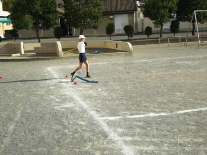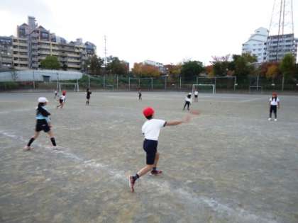 ティーボールがはじまりました 公開日 2013/11/19 更新日 2013/11/19 4年生 体育では、ベースボール型ゲームのティーボールが始まりました。 ティーボールは、ピッチャーのいない野球で、守備やバッティングは野球同様に行ないます。 ボールは野球ボールでなく、紅白だまを使いました。 子どもたちは、台の高さを調整したり、振り方を変えたりしながら、楽しそうに活動をしていました。 4年