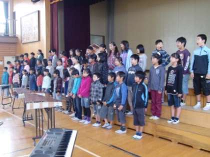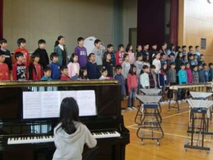 連音練習1 公開日 2013/11/25 更新日 2013/11/25 5年生 29日(金)の連合音楽会に向けた練習風景です。合唱(時の扉)と合奏(オペラ座の怪人)に取り組んでいます。田中美由紀先生の指導でどんどんうまくなっています。明日26日(火)は朝の集会で全校児童、保護者、地域の方に披露します。 5年