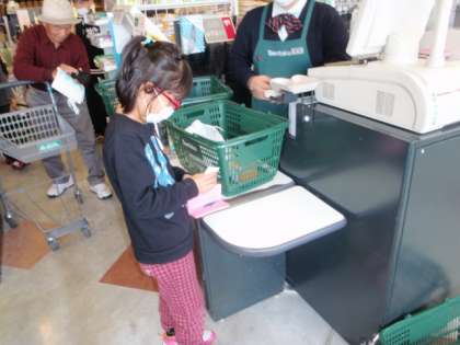 店内では、全員静かに買い物ができました。レシートやおつりを忘れずに受け取ったり、買ったものを袋につめたり…と真剣な子供たち。無事に買い物を済ませました。