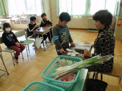 事前に何を作るのかを確認し、誰がどの品物を買うのかを相談しました。「1年生は軽いものがいいね。」「難しそうなものは4年の方がいいよね。」などと、低学年を気遣う様子も見られよかったです。財布を準備して、さぁ出発!!
