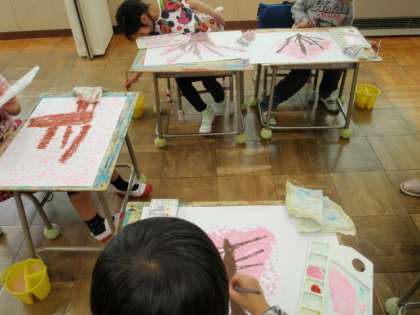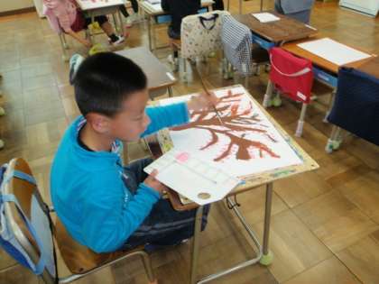 桜の木! 公開日 2014/04/15 更新日 2014/07/28 とちのみ学級 先週、図工の授業で「桜の木」の絵を描きました。花が散ってしまう前に春の様子を残しておこうと、全員で取り組みました。画版を使って描くのは初めての試みでしたが、画用紙をおさえながら描く姿が見られました。よく観察してから、高学年は鉛筆で下がきをして、低学年はクレパスで直接描きました。幹や花の様子など、上手に表現することができました!! とちのみ