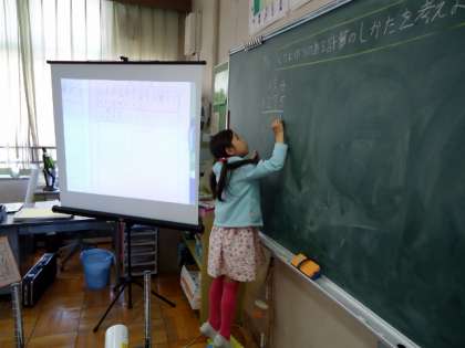 たし算の勉強をしています 公開日 2014/04/15 更新日 2014/04/15 3年生 算数の時間に、3桁のたし算について勉強しました。 ワークブックとノート、教科書を使い、子どもたちは繰り上がりのあるたし算の問題を解いていました。 黒板に書かれた問題に対して、積極的に発言ができています。 これから1年間の算数が楽しみです。 3年