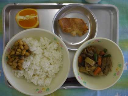 4月24日(木) 今日の給食 公開日 2014/04/24 更新日 2014/04/24 給食室から ごはん 赤魚のみそ焼き いりどり 鶏肉と大豆の炒め物 くだもの 牛乳 ☆☆☆ 産地 ☆☆☆ ごぼう 青森 にんじん 静岡 いんげん 沖縄 にんにく 青森 清見オレンジ 和歌山 給食