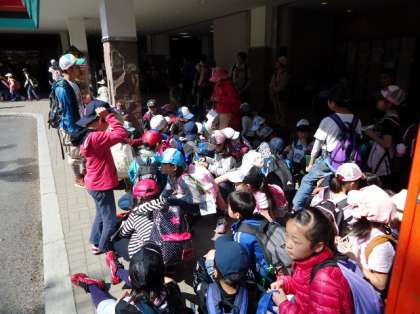 校外学習に行きました1 公開日 2014/04/25 更新日 2014/04/25 3年生 待ちに待った校外学習‼ 天気予報通りの快晴で、すがすがしい気候で登ることができました。 子どもたちは。朝早く学校に集まり、無事にバスに乗り高尾山に向けて出発しました。 北野駅から高尾山口駅までの電車も、静かに乗ることができました。 写真1枚目:最初のお話 写真2枚目:北野駅 写真3枚目:高尾山口駅に到着 3年
