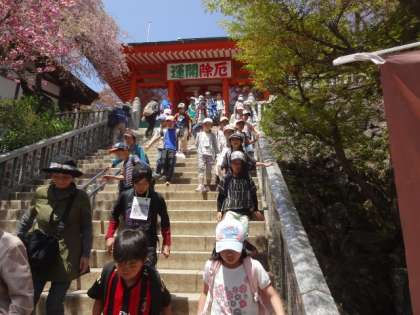 4月24日、高尾山へ校外学習に行きました。素晴らしい天気にも恵まれ、新緑の山を元気に登ることができました。4年生は同じグループの3年生をリードしながらの登山となりました。下りはケーブルカーを利用しました。