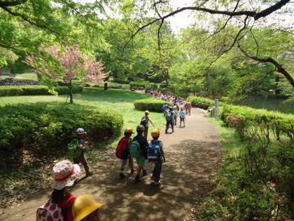 4月25日(金)、歩き出すとすぐに暑くなるぐらいの天候の中、1・2年生(とちのみ学級も)の校外学習(富士見台公園)を実施しました。公園内ではグループごとに、トランポリン、遊具、展望台などで遊びました。木陰でのお弁当も美味しくいただきました。また、2年生は1年生を気遣う場面がたくさん見られました。さすが、2年生!