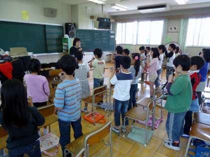 はじめてのリコーダー 公開日 2014/05/08 更新日 2014/05/08 3年生 音楽の時間にはじめてリコーダーを演奏しました。 子どもたちははじめて触るリコーダーに興味津々でした。 持ち方や、分解の仕方、掃除の仕方を聞き、楽しそうにリコーダーを使っていました。 3年