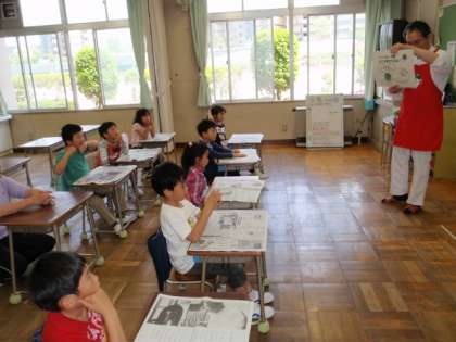 栄養士さんから紙芝居で手順を説明してもらった後、さやむき体験開始!!「どうやってむくのかな。」「たくさん出てきたよ。」など、いろんなつぶやきが聞こえてきました。