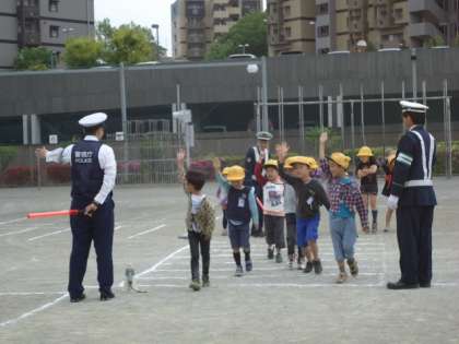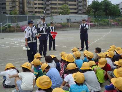 交通安全教室がありました 公開日 2014/05/16 更新日 2014/05/16 1年生 5月15日(木)に交通安全教室を実施しました。南大沢警察署の方々に来ていただき安全に横断歩道を歩く練習をしました。みんな真剣に話を聞いていました。 1年