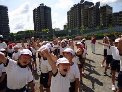 人間ウェーブをしたり、暑さの中でがんばりました!