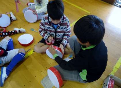 運動会の準備をしました 公開日 2014/05/22 更新日 2014/05/22 3年生 運動会のエイサーで使う、太鼓を修理しました。 今までの練習で大半の子ども達の太鼓は壊れていました。 子ども達は、修理して新品のようにきれいになった太鼓を嬉しそうに叩いていました。 道具もそろいました。本番が楽しみです!! 3年