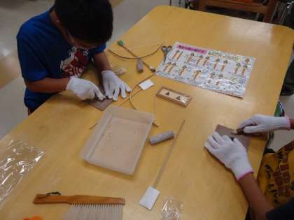 6日(土)は、黒耀石体験ミュージアムでの縄文グッズ作り、長門牧場でのバター作りなどの体験学習をしました。