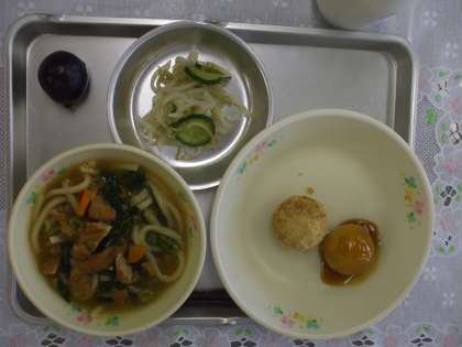 9月8日(月) 今日の給食 公開日 2014/09/12 更新日 2014/09/12 給食室から こぎつねうどん つきみだんご(きなこ・みたらし) スタミナきゅうり くだもの 牛乳 ☆☆☆ 野菜の産地 ☆☆☆ にんじん 北海道 だいこん 北海道 ながねぎ 山形 こまつな 昭島 きゅうり 青森 にんにく 青森 もやし 栃木 巨峰 山梨 給食
