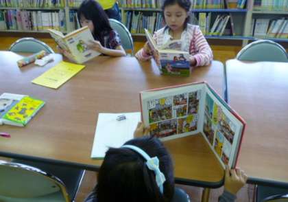 読み聞かせのあとは、図鑑や本を楽しそうに読んでいました。