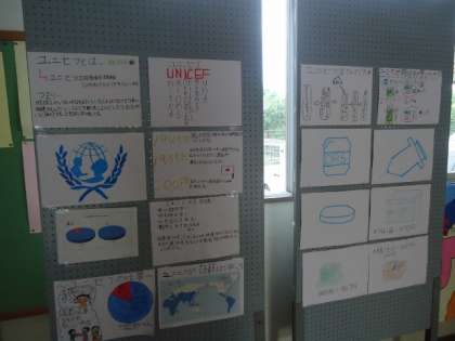 ユニセフ募金最終日 公開日 2014/09/19 更新日 2014/09/19 今日の出来事 9月17日(水)から始まったユニセフ募金は最終日となりました。1階ろうかには、ユニセフ募金の内容も掲示されました。募金をしていただいた皆さん、ご協力ありがとうございました。 校長より
