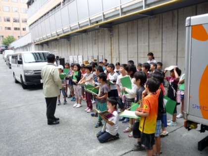 スーパーマーケット見学に行きました 公開日 2014/09/19 更新日 2014/09/19 3年生 3年生は社会科見学として、スーパーマーケット見学に行きました。見学に行った場所は、イトーヨーカドー南大沢店です。子どもたちはまず店内を見学しました。その後、バックヤードを見ながら、販売の工夫について店員さんから説明や紹介がありました。とても丁寧な説明で、子どもたちは興味津々に聞いていました。