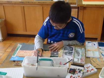 作品展まで10日 公開日 2014/11/05 更新日 2014/11/05 今日の出来事 作品展に向けて、6年生は「愛宕小の思い出」のテーマで水彩画を描いています。一人一人の児童が思い出をまとめた作品です。作品展の鑑賞日は、11月15日(土)です。多くの方々のご来校をお待ちしています。 校長より 6年 授業 行事