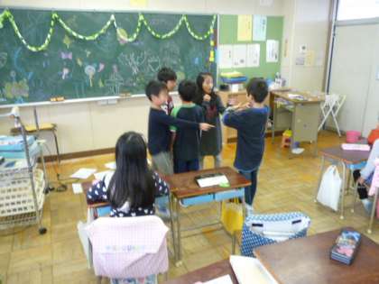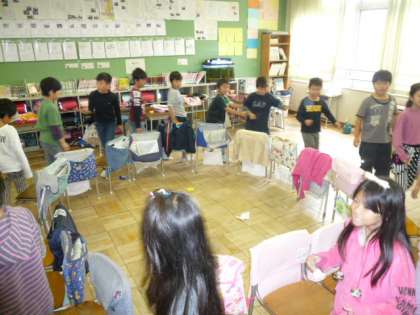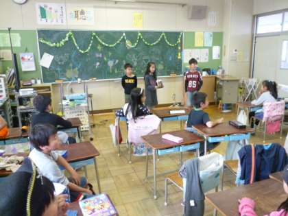 クラスのお楽しみ係さんが企画をして、トリック・オア・トリートや、かぼちゃさがし・イスとりゲームなどをしました。
