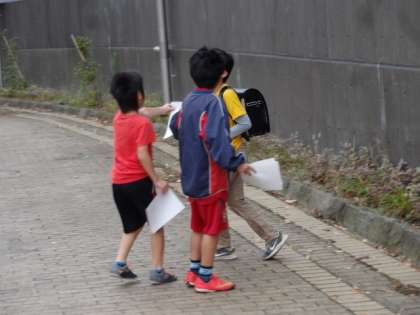 節水を広める活動 公開日 2014/11/09 更新日 2014/11/09 4年生 11月4日から7日まで、四年生は、全校に節水を広めるための活動を行いました。1学期に取り組んだ、「各家庭での節水の取り組み」の延長としての活動です。チラシを作成して配ったり、スタンプラリーをしたりと、班ごとに考えた方法で実施しました。 4年