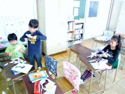正三角形を使って 公開日 2014/11/11 更新日 2014/11/11 3年生 算数の時間に、正三角形を使った立体を作りました。 コンパスと定規を使って書けるようになった正三角形を組み合わせると、色々な形ができます。子ども達は立体の種類にびっくりしていました。