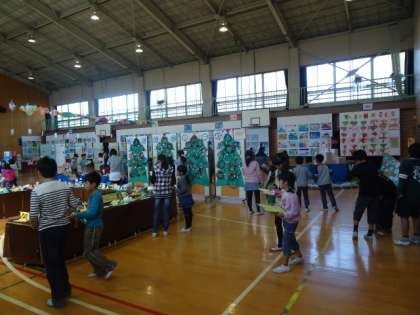 作品展 児童鑑賞日 公開日 2014/11/14 更新日 2014/11/14 今日の出来事 本日より作品展が始まりました。会場の体育館の入口には、とちのみ学級制作の看板が出迎えてくれます。今日は、みんな友だち班2〜3名のグループで互いの作品について紹介や質問を交えながら鑑賞し合いました。 校長より 行事